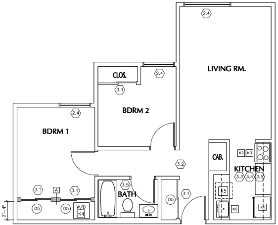 • Unit B2 - Two Bedroom / One Bath - W/D - HC*